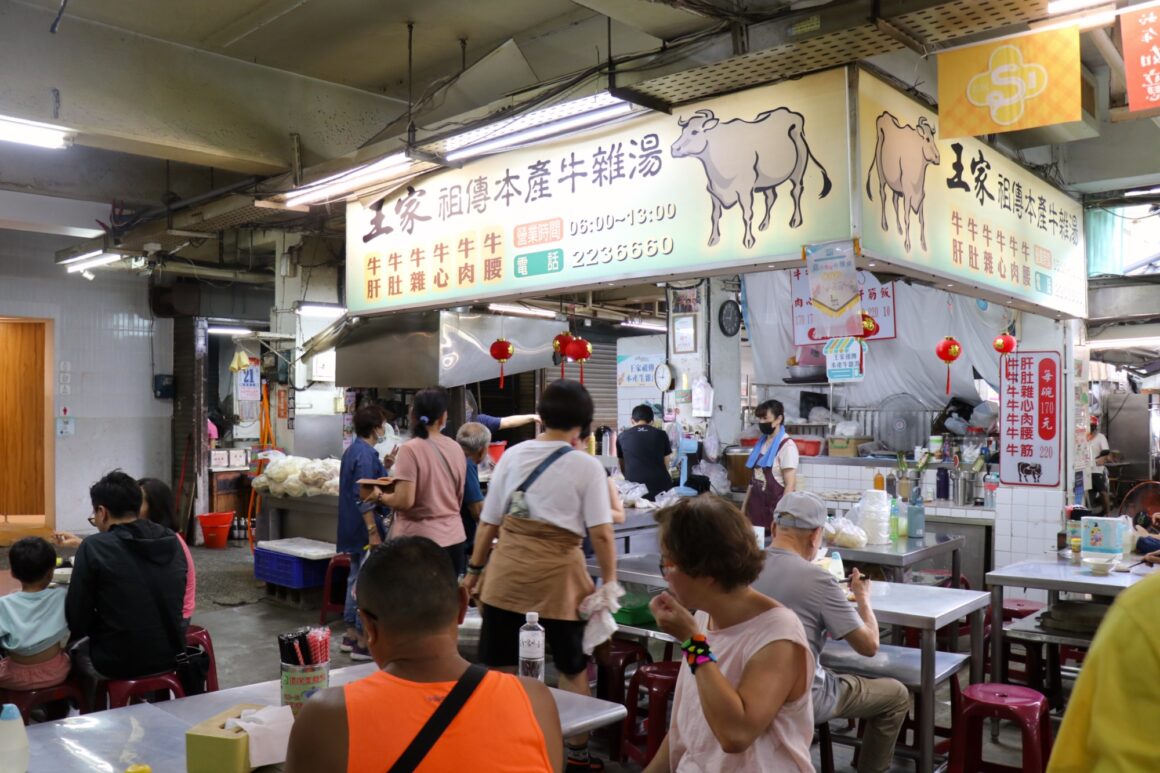Beef offal soup is a morning staple for many Chiayi residents. Wang Family Beef Offal Soup (王家祖傳本產牛雜湯), now in its fourth generation, uses freshly slaughtered beef and various offal to create a clear, sweet broth. Beef heart, tripe, liver, and tendon each offer different textures—no gamey smell, just a gentle meaty aroma. The large soup pot on the table with “free refills” written on it is the most direct expression of local warmth.